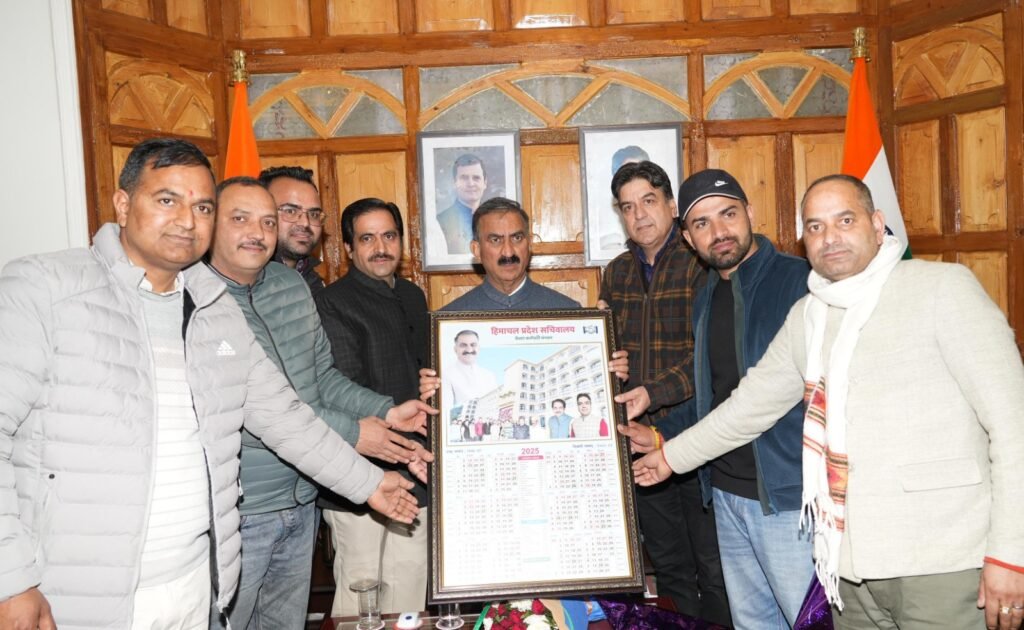 मुख्यमंत्री ठाकुर सुखविंद्र सिंह सुक्खू ने आज यहां हिमाचल प्रदेश सचिवालय सेवा कर्मचारी संघ का कैलेंडर-2025 जारी किया। इस अवसर पर संघ के अध्यक्ष संजीव शर्मा, महासचिव कमल कृष्ण शर्मा और अन्य प्रतिनिधि भी उपस्थित थे।