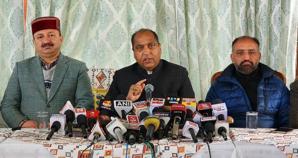 शिमला, भाजपा नेता प्रतिपक्ष जयराम ठाकुर ने प्रेस वार्ता को संबोधित करते हुए कहा कि सुक्खू सरकार त्यागपत्र देकर दोबारा हिमाचल में करवाएं जनमत, इसके साथ साथ विपक्ष के नेता जयराम ठाकुर का मुख्यमंत्री सुक्खू पर बिजली की सब्सिडी छोड़ने को लेकर बड़ा हमला हमला किया